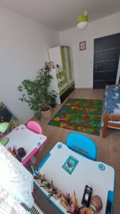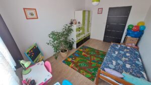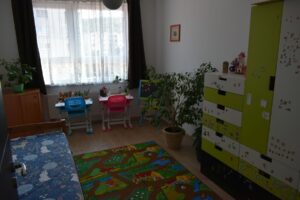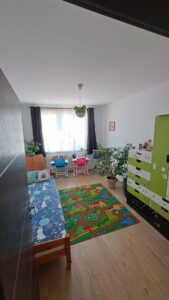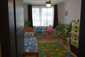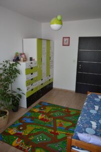 Najväčšia izba v byte s rozlohou 13,43 m² je v súčasnosti využívaná ako detská izba.