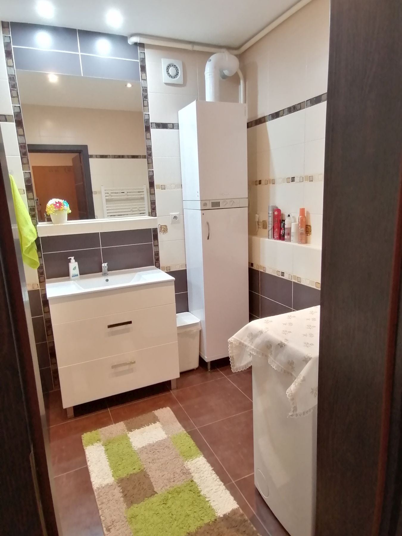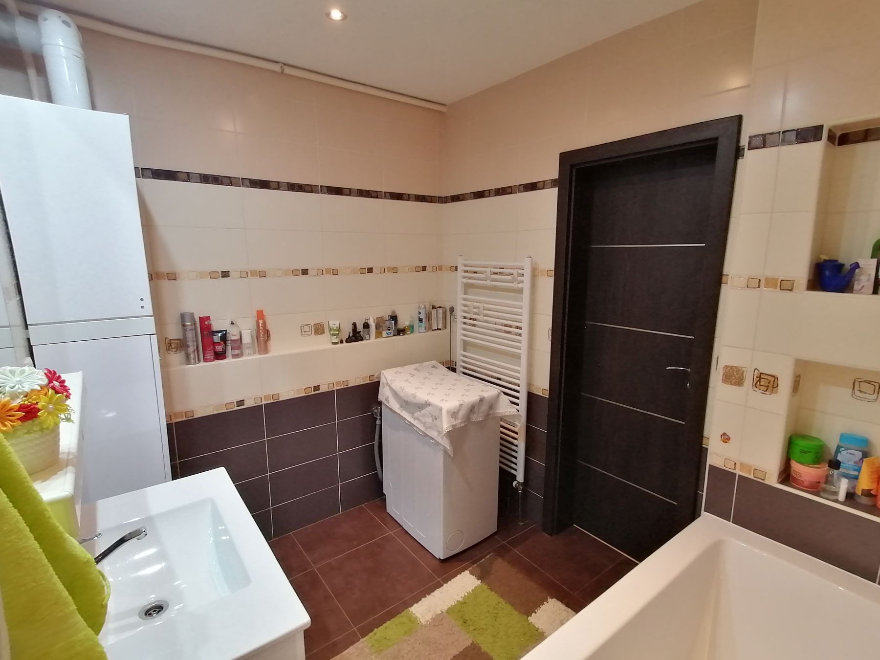 Kúpeľňa je riešená moderne a prakticky. Vďaka presunutiu plynového kotla na chodbu sa celý priestor opticky aj funkčne zväčšil.