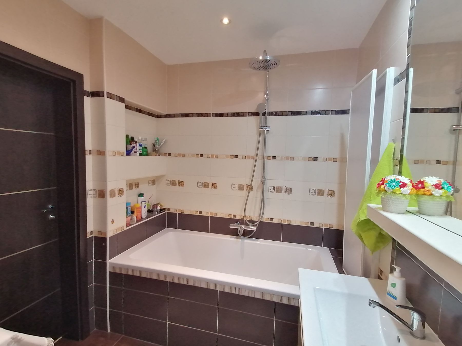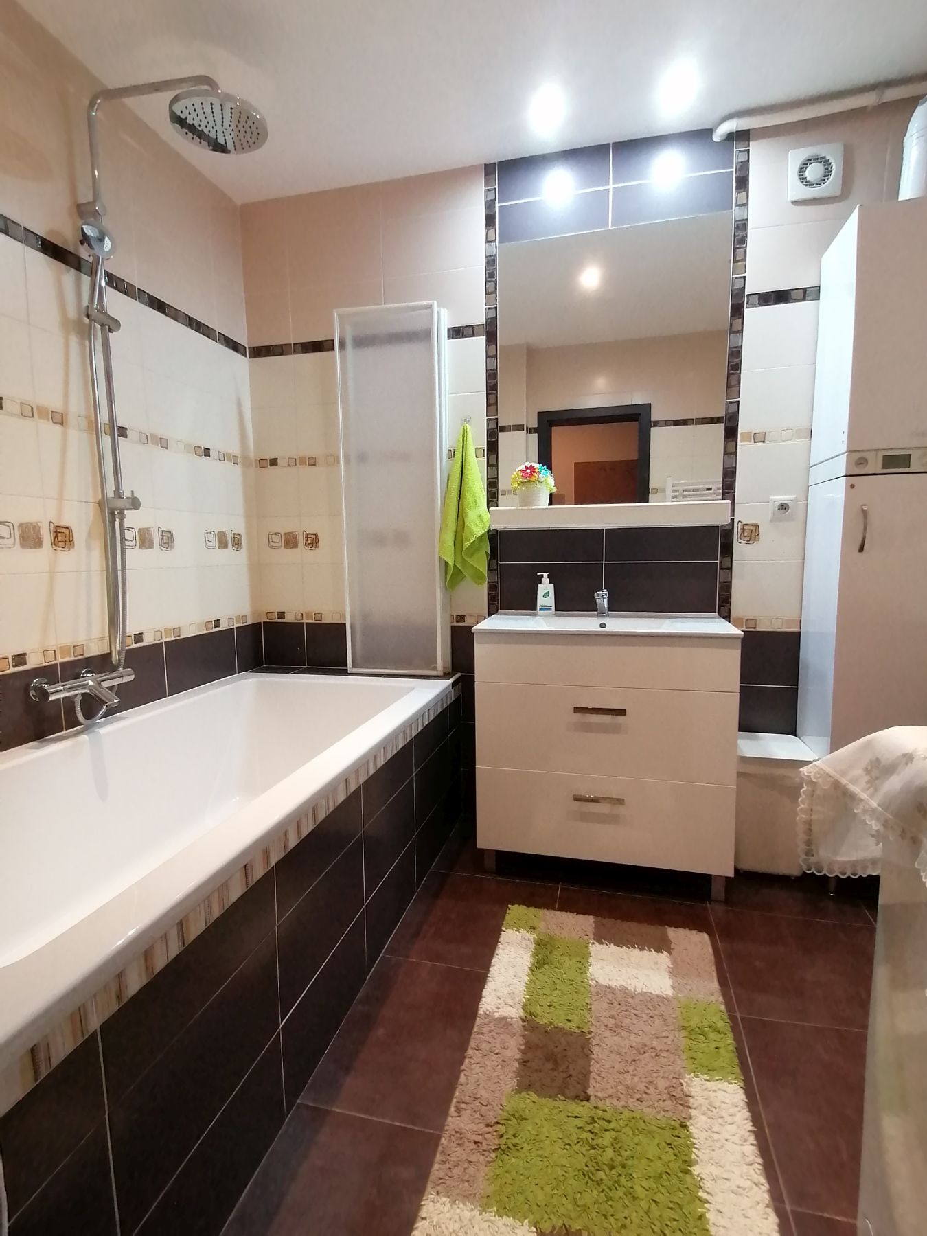 Zároveň je tam priestranná vaňa, ktorá ponúka pohodlné kúpanie aj pre viacerých členov rodiny – už žiadna stiesnená vaňa, kde sa neviete otočiť. A sprcha so sprchovou hlavicou, pre sprchovanie s voľnými rukami.