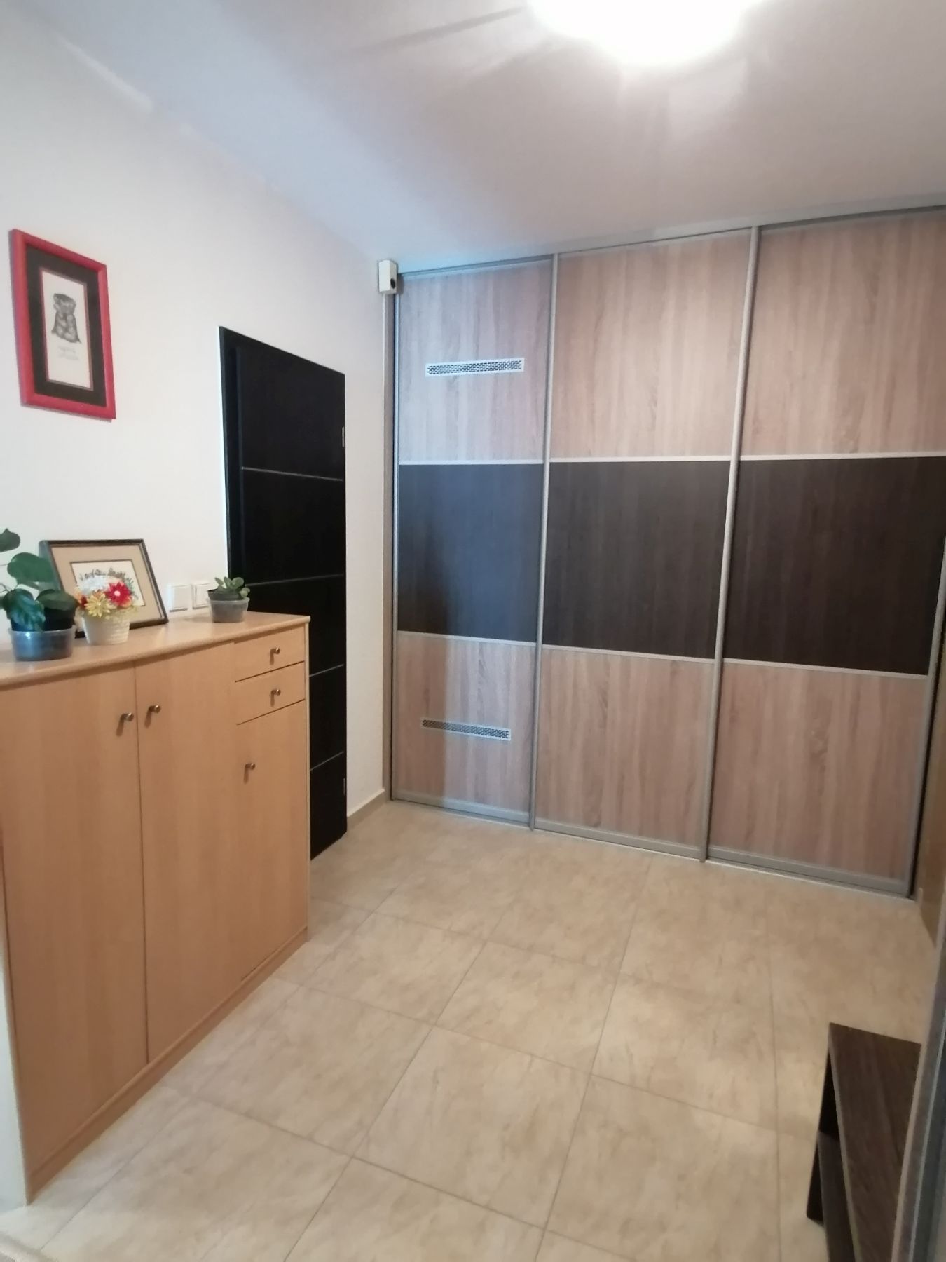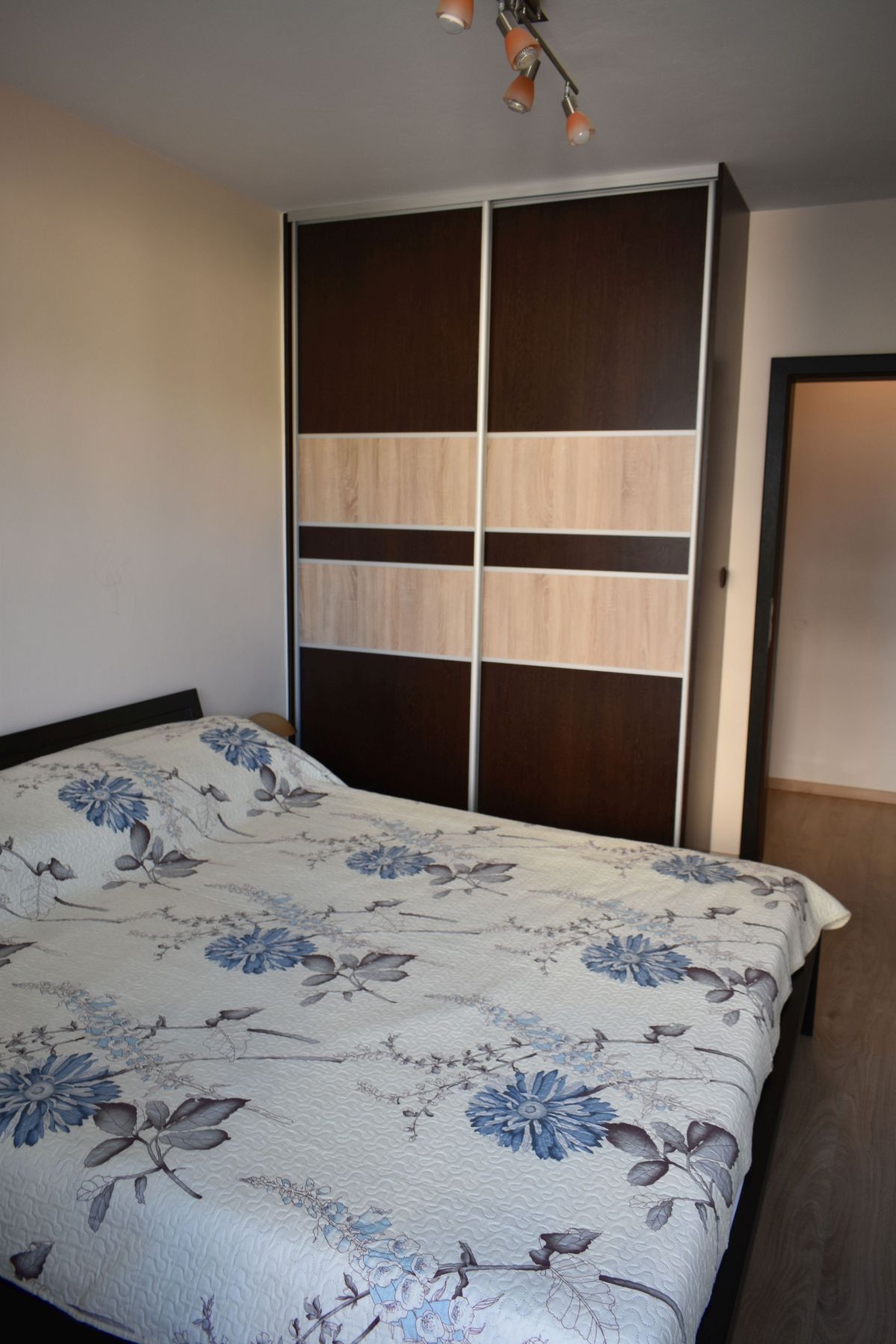 Je vybavená vstavanou skriňou na mieru, ktorá šetrí miesto a zároveň ladí s celkovým dizajnom bytu.